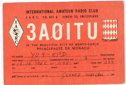 3A0ITU to YO9KPD 17 AUGUST 1965 7MHz