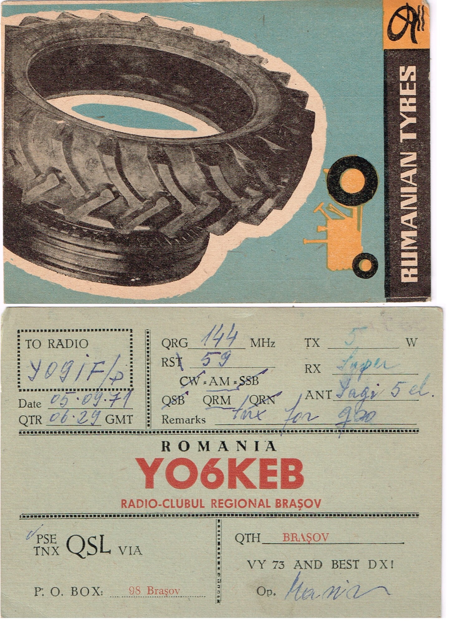 YO6KEF to YO9IF/P 5 septembrie 1971 145MHz