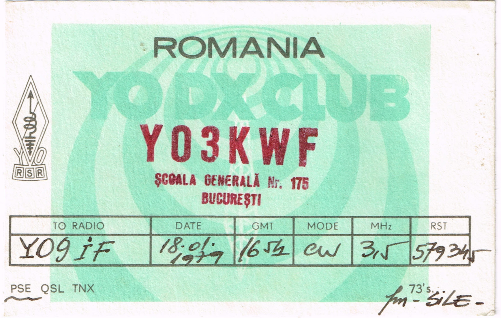 YO3KWF to YO9IF 18 ianuarie 1979 3.5MHz