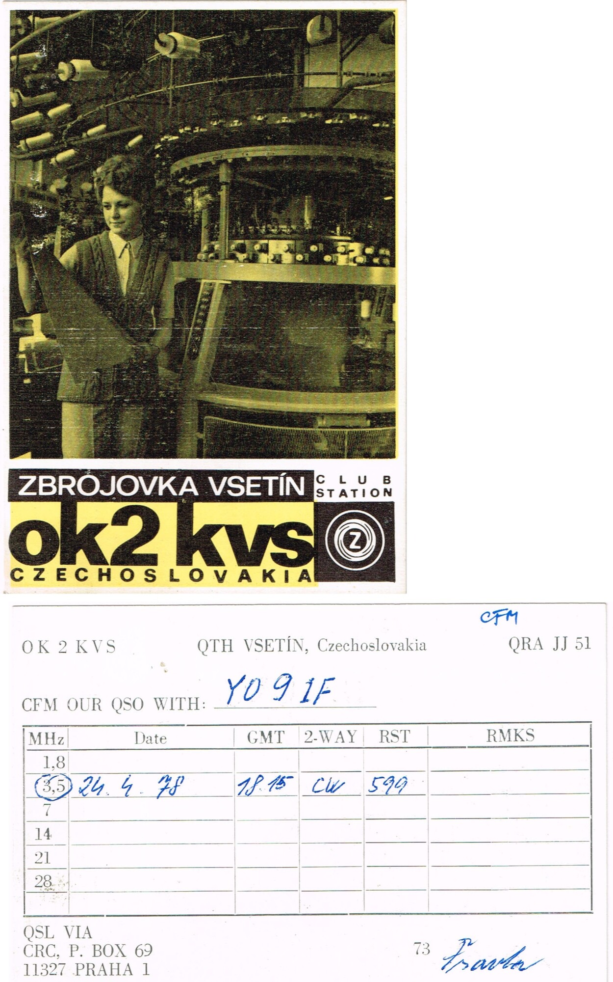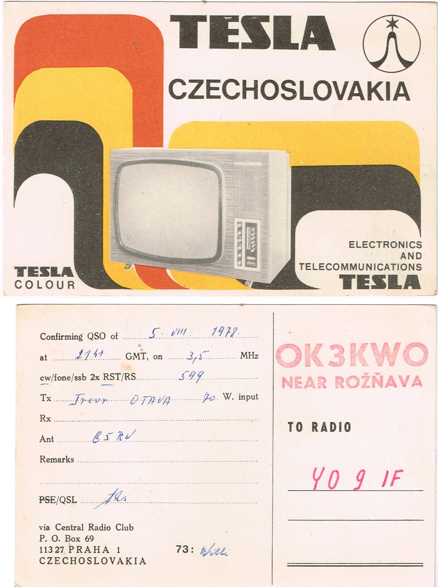 OK3KWO to YO9IF 5 august 1978 3.5MHz