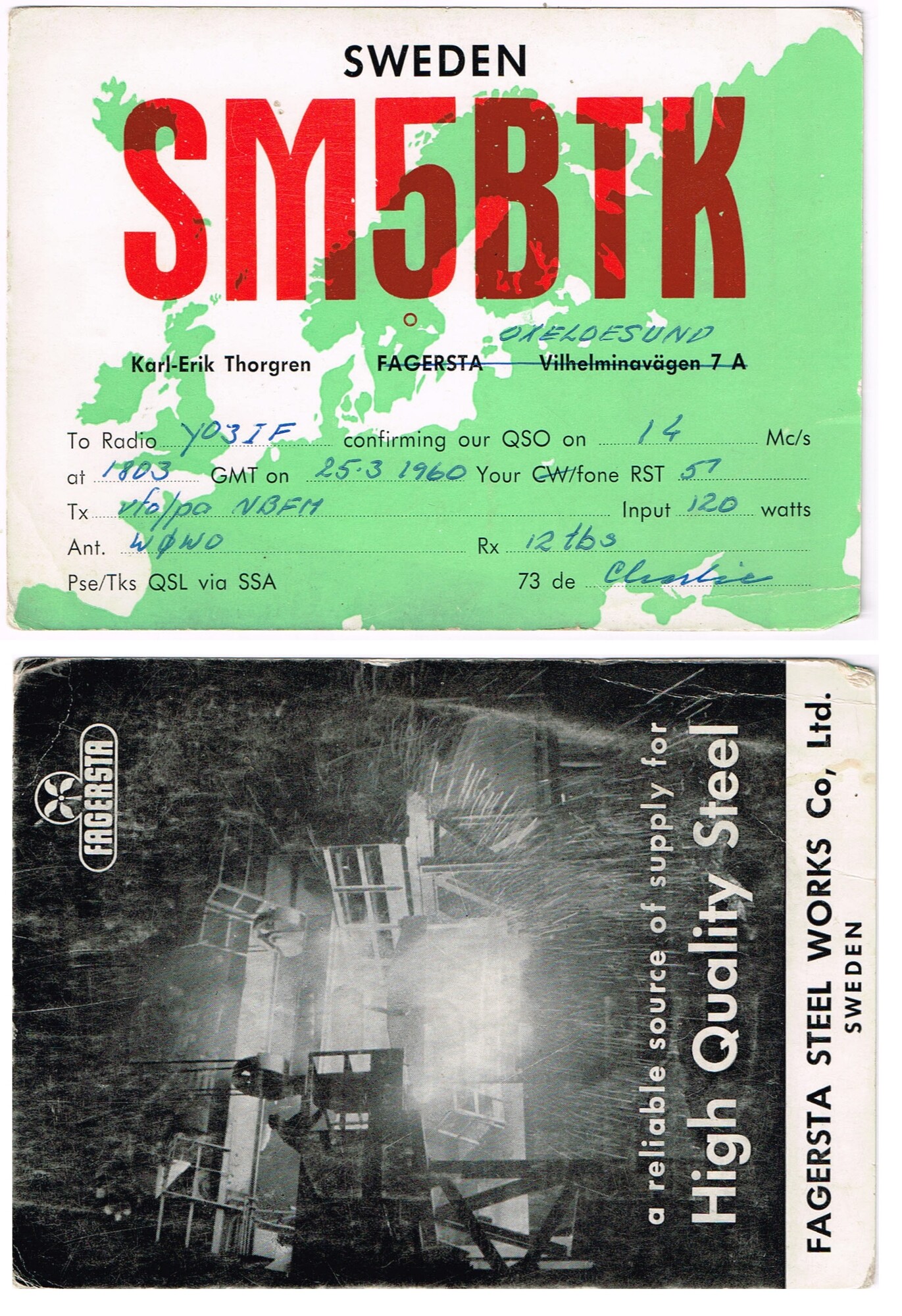 SM5BTK to YO3IF 25 MARTIE 1960 14MHz