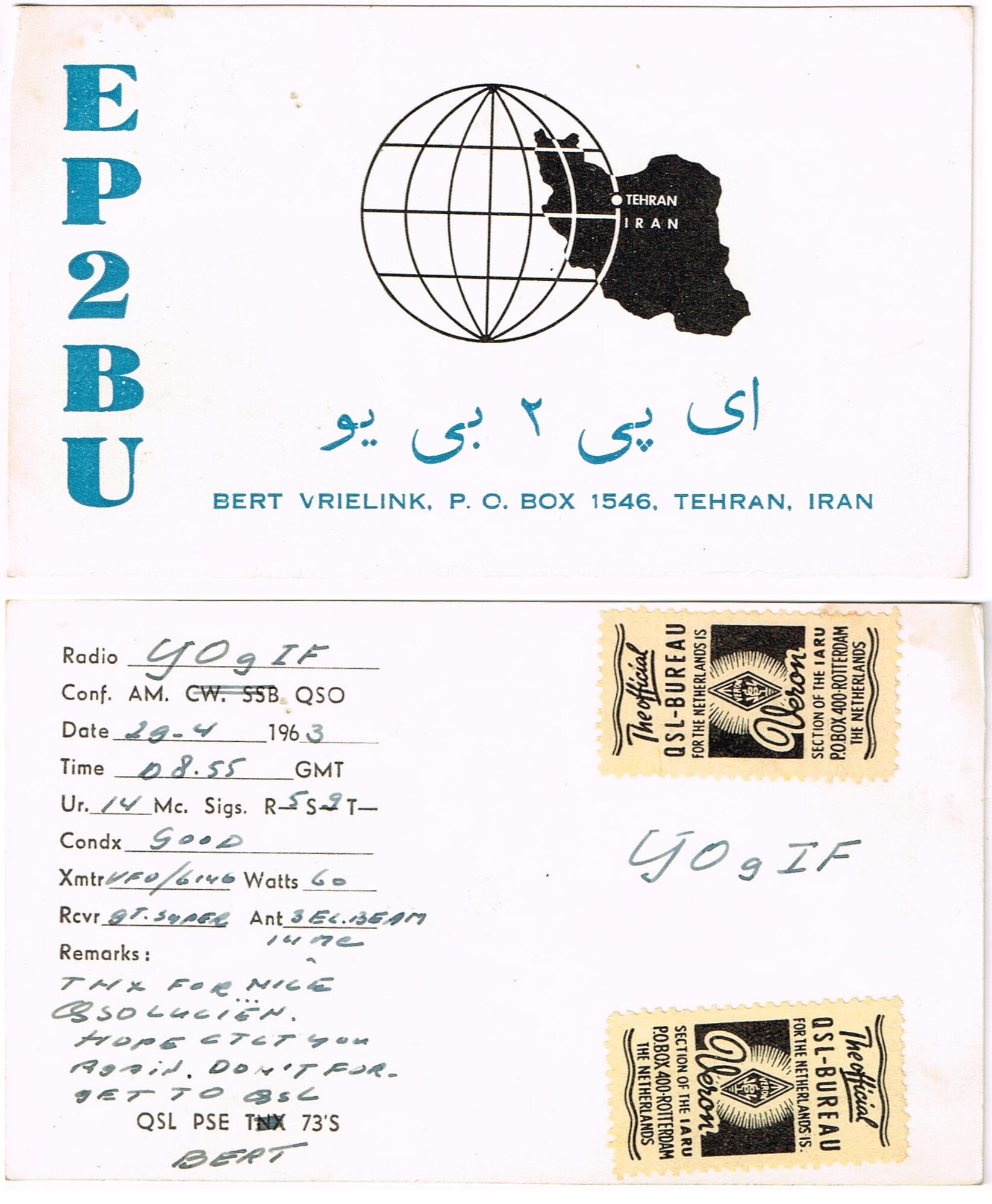 TNX for nice QSO - Bert din Teheran - IRAN