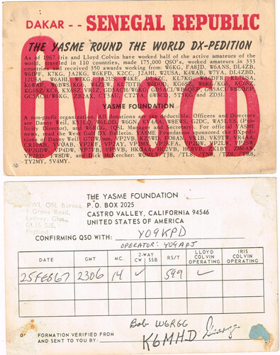 6W8CD to YO9KPD 25 FEBRUARIE 1967 14MHz