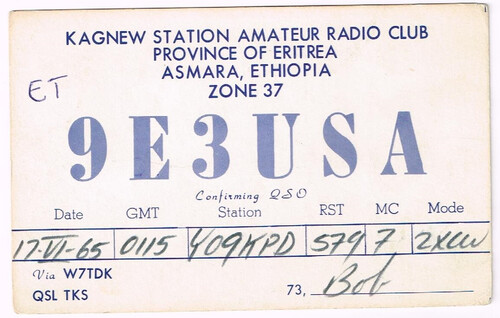 9E3USA to YO9KPD 17 IUNIE 1965 7MHz