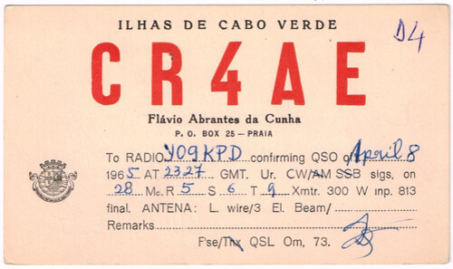 CR4AE to YO9KPD 8 APRILIE 1965 28MHz CW
