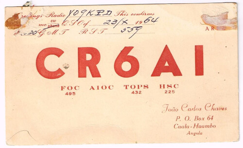CR6AI to YO9KPD 23 OCTOMBRIE 1964
