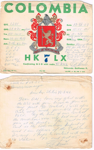 HK7LX to YO3WL 13 IULIE 1957 28.470kHz