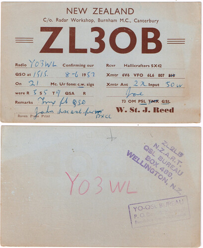 ZL3OB to YO3WL 8 IUNIE 1952 21MHz