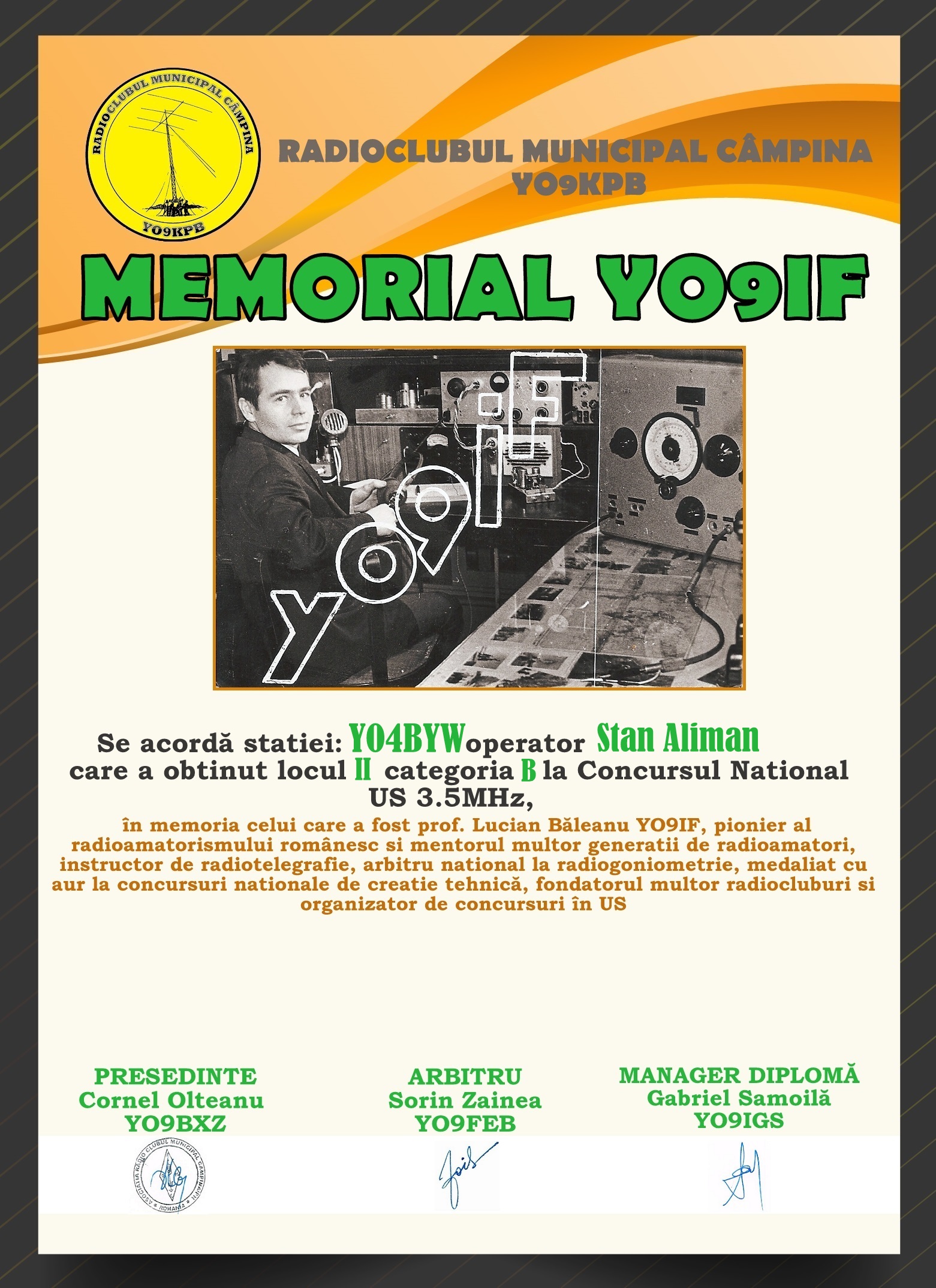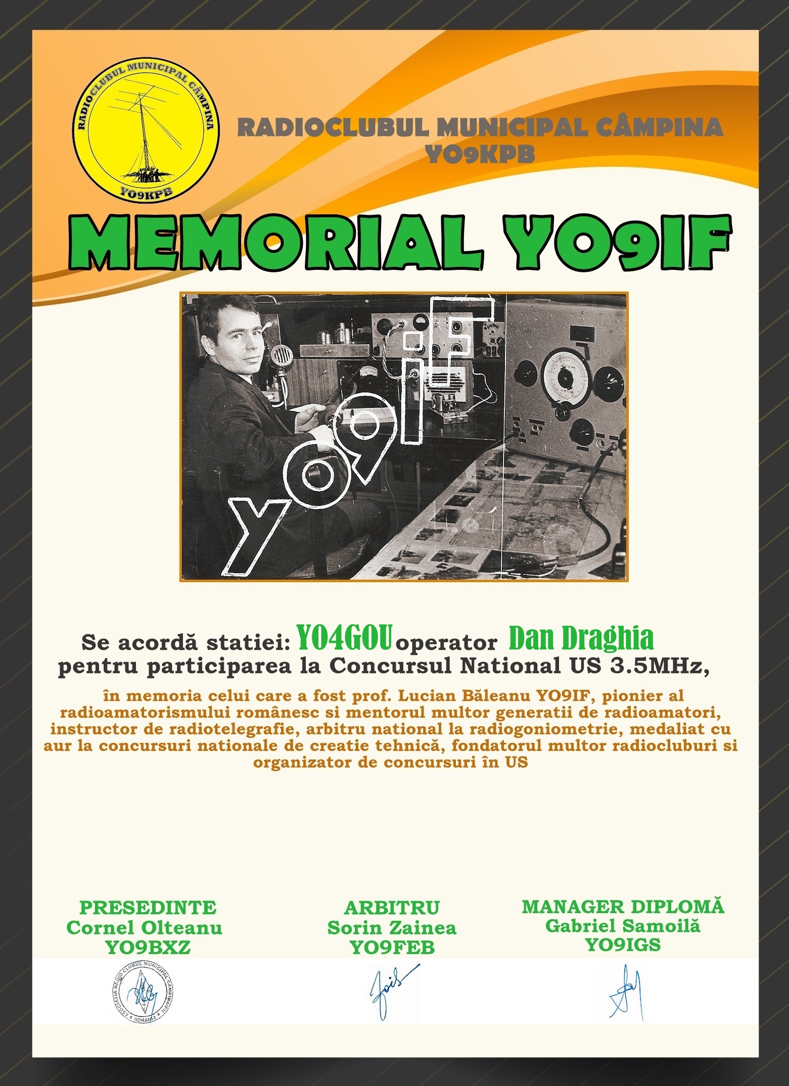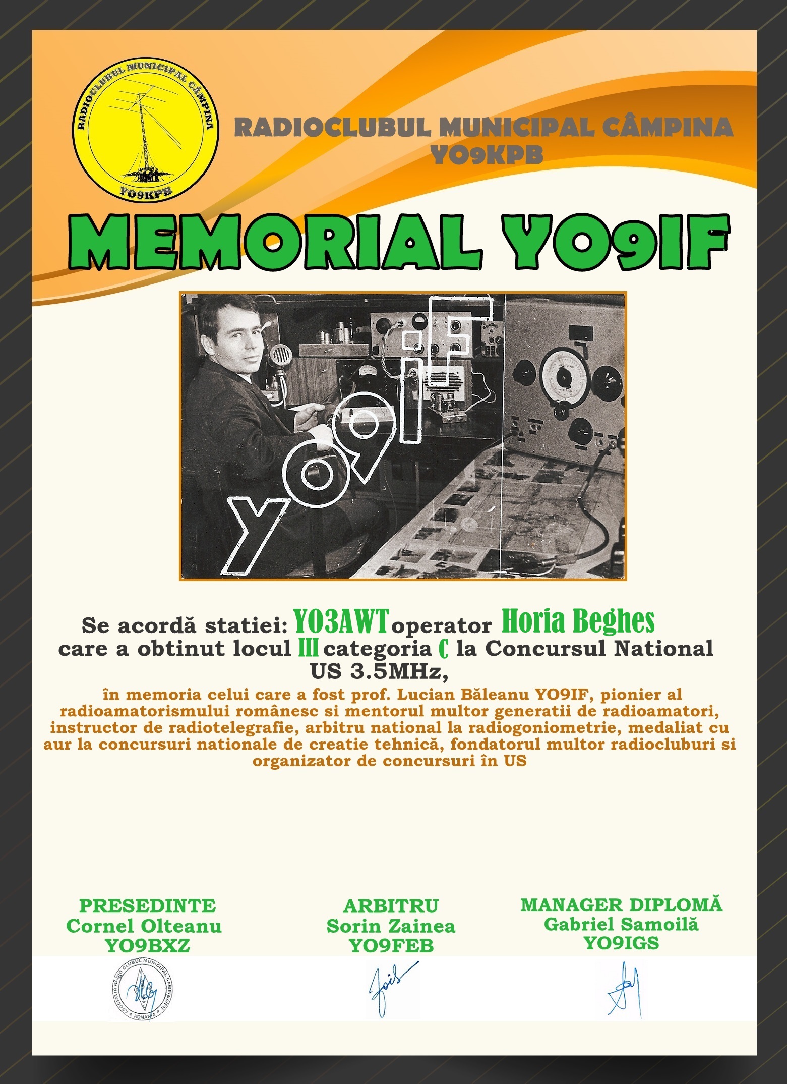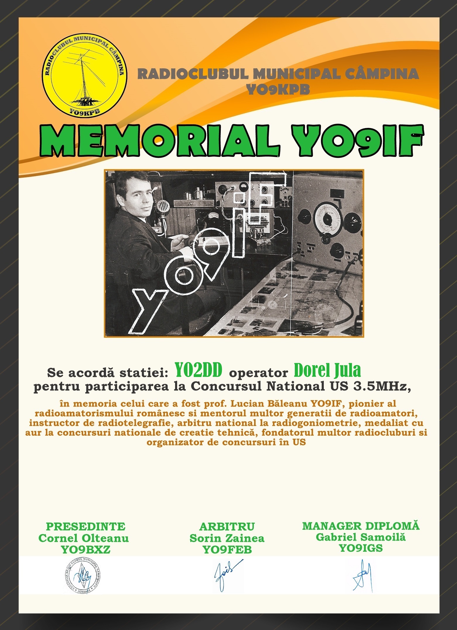 În această secțiune puteți descărca diplomele de participare la Concurs Memorial YO9IF ediția 2025. Click pe indicativ, apoi click dreapta și Salvează imaginea ca...